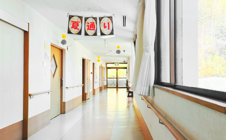 基準値よりも広く居室を作っております。多床室(2人部屋)と個室があります。