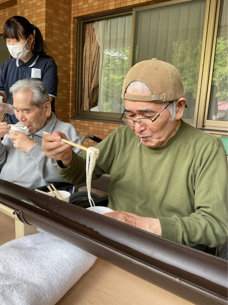 活動ブログ2025年08月07日 素麺流しを行いました(^^♪ 7月13日に1階フロアにて そうめん流しのイベントを行いました! 今年は猛暑が続きますが、涼しい室内で、竹を使っての素麺流しで入居者様、 ご家族様も笑顔で楽しんでくださいました。 ヴェルデの森では入居者様、ご家族様に楽しんでいただけるイベントを毎月開催しますので、ブログで 報告させていただきます。